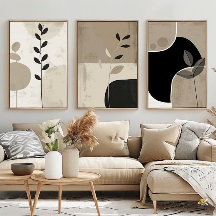 - Phù hợp mọi phong cách nội thất: Từ Scandinavian, Japandi, đến Wabi-Sabi — tranh tối giản tương thích tốt với hầu hết theme nhà.