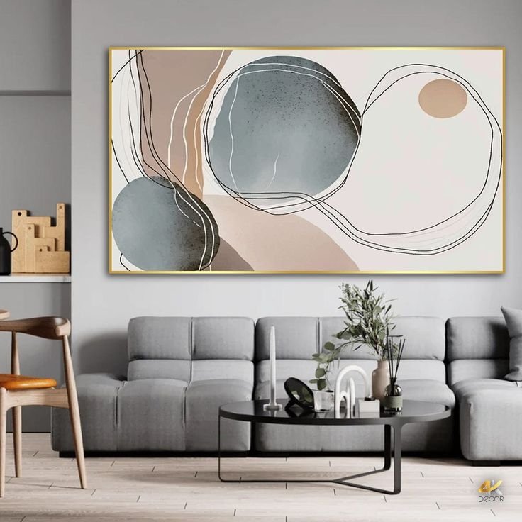 Tranh trừu tượng tối giản kết hợp hình khối hình học đơn giản (tròn, vuông, tam giác) với màu sắc tối thiểu. Phong cách này rất phù hợp cho phòng khách hiện đại, tạo điểm nhấn mà không gây cảm giác nặng nề. Xem thêm bộ sưu tập tranh trừu tượng đẹp để có thêm gợi ý.
